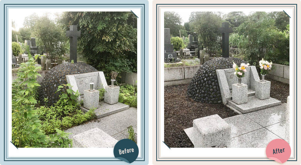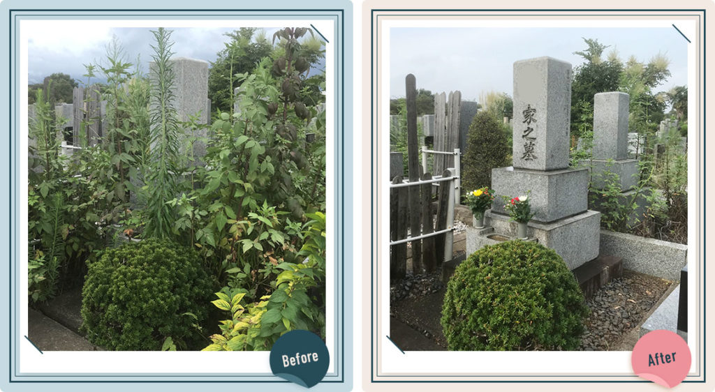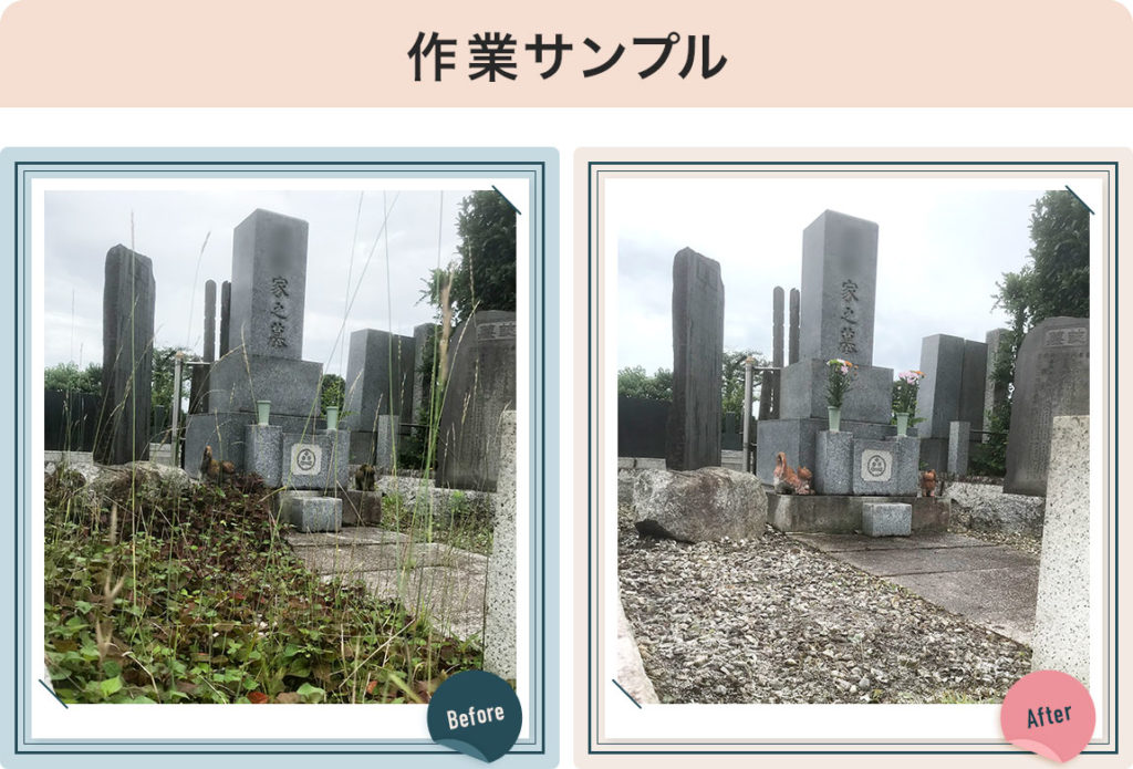 - お墓の場所が特定できずご連絡もつかないなど止むを得ない事情が生じた場合、作業は実施いたしません。